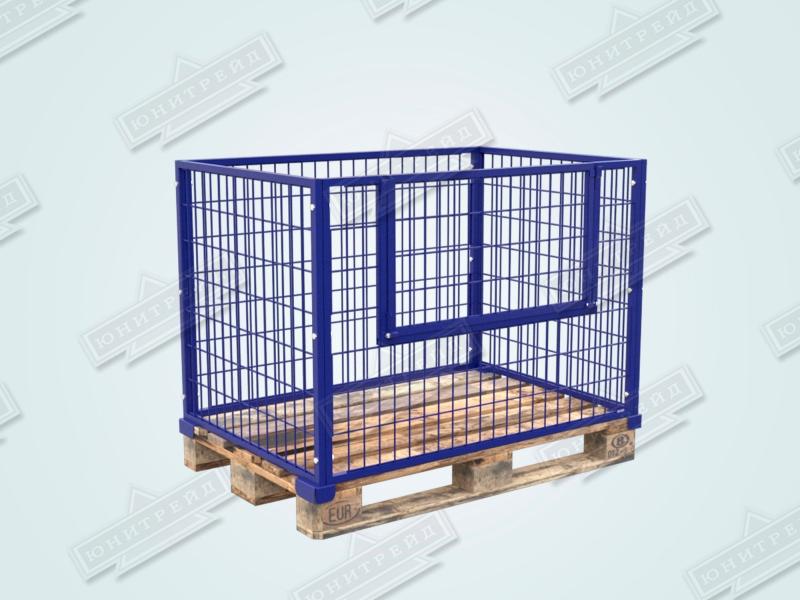 Сетчатый бокс оснащен дверцей, которая позволяет извлекать товар с поддона.