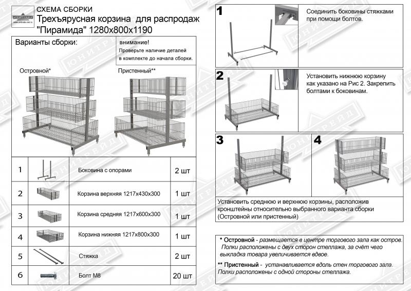 | Схема сборки трехъярусной корзины для распродаж "Пирамида" 1280х800х1190 |