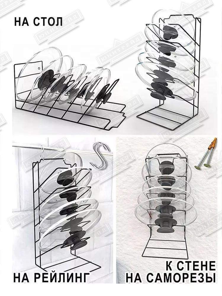 Металлический держатель под крышки предназначен для хранения крышек от сковородок и кастрюль.