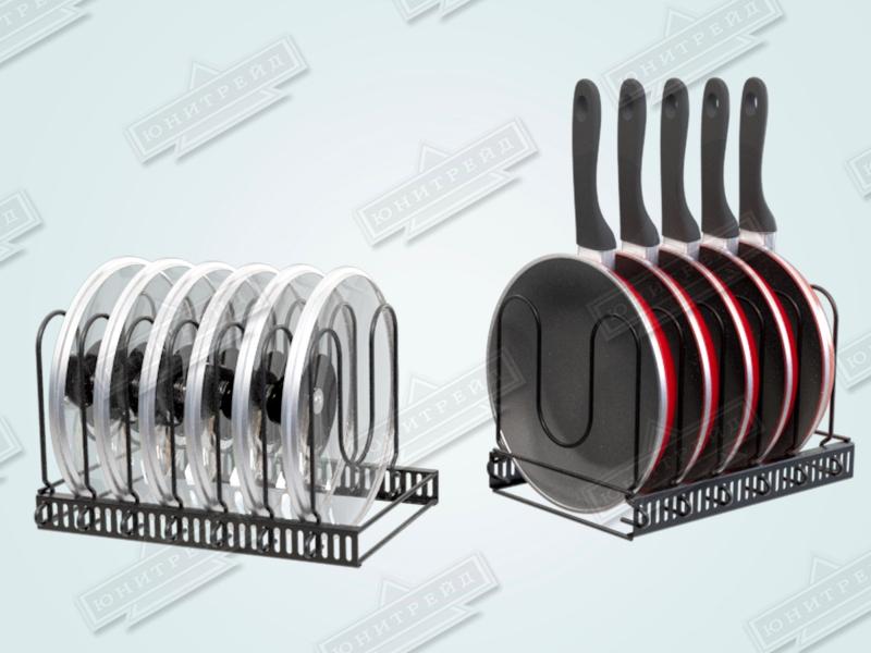 Многофункциональность: подходит для хранения крышек, сковород разного диаметра и другой кухонной утвари.