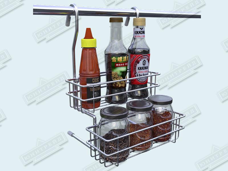 Разборная металлическая полка на рейлинг предназначена для хранения специй, соусов, чая и других мелочей.