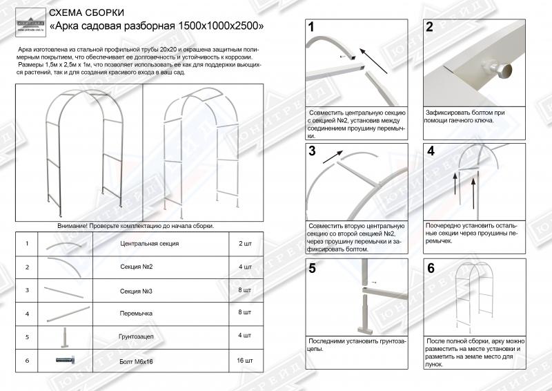 | Арка садовая разборная | 1500х1000х2500 | белый |