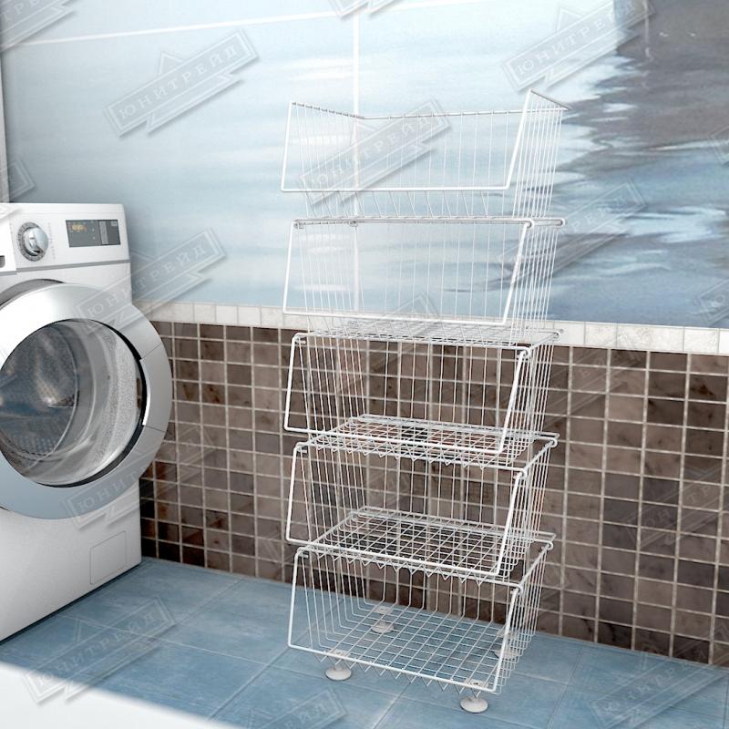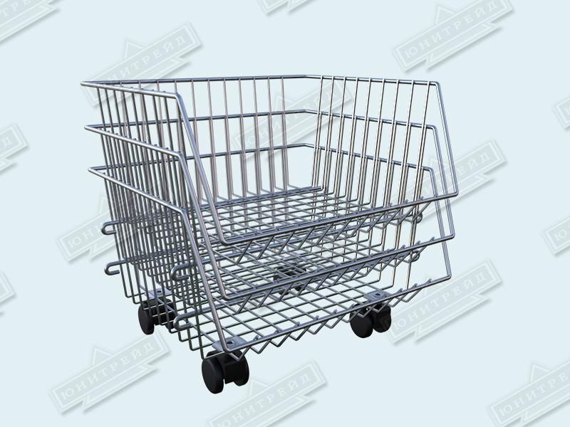 Главная особенность - корзины можно ставить друг на друга в любом количестве, при этом доступ к объектам хранения сохраняется. Этажерка разбирается, что позволяет снизить затраты при транспортировке.Могут быть с колесами и без. Крепятся друг на друга с помощью крючков.