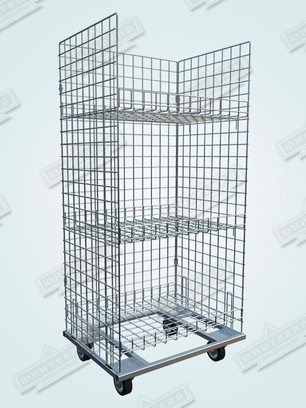 Главная / Продукция / Торговое оборудование / Оборудование для торгового зала (стенды /стойки/стеллажи) / Сетчатый торговый стеллаж конструктор разборный на колесах