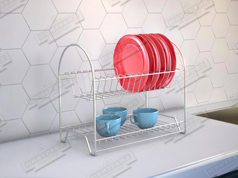 Металлическую тарелосушку можно разместить на столе или в шкафу над раковиной. Посудосушитель представляет собой двухуровневую сушилку для посуды и хранения кружек стаканов, ложек, вилок и ножей и других столовых приборов. Сушка прекрасно впишется в ваш кухонный интерьер. Комплеткцию с поддоном необходимо предварительно согласовать с нашими менеджерами.