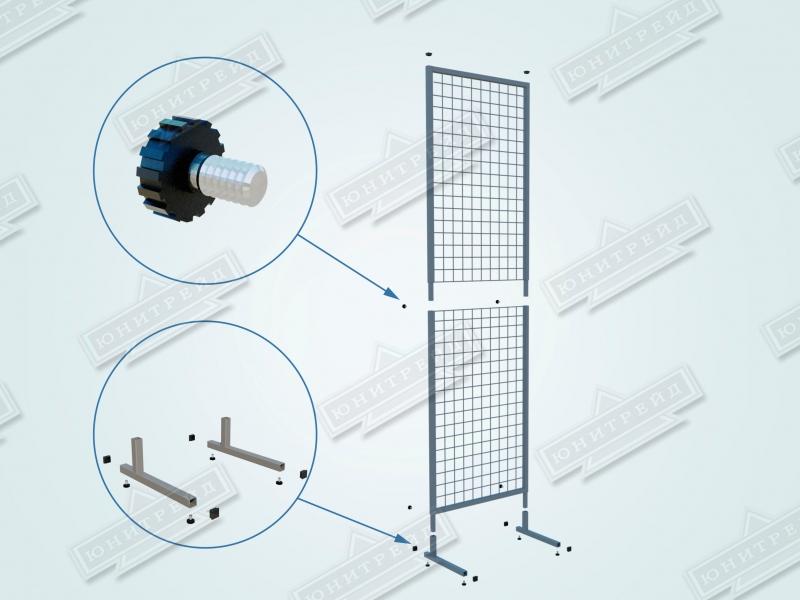 Главная / Продукция / Торговое оборудование / Сетки, сетчатые стенды с перфорацией, навесы и крючки / Торговая стойка сетчатая разборная
