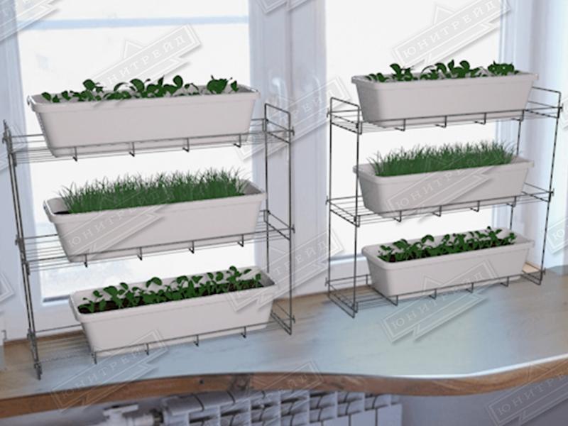 Полка для рассады на окно выполнена в двух цветах: черный, белый и цинк. Имеет универсальный дизайн, который впишется в любой интерьер.