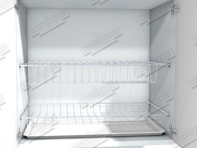 Двухярусная навесная посудосушилка предназначена для хранения посуды и столовых приборов в кухонном шкафу.